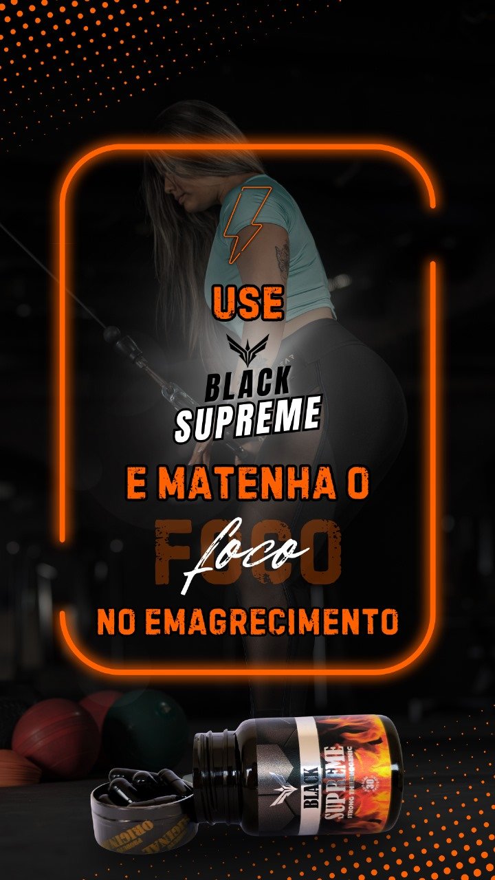 Sinta-se energizado, motivado e no controle de sua jornada de emagrecimento com BLACK SUPREME, o aliado perfeito para quem busca resultados rápidos e duradouros.